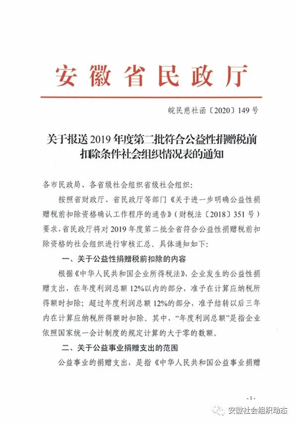 关于报送2019年度第二批符合公益性捐赠税前扣除条件社会组织情况表的通知