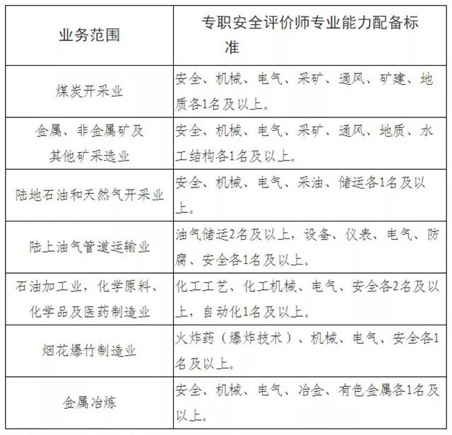 (三)承担矿山、金属冶炼、危险化学品生产和储存、烟花爆竹等业务范围安全评价的机构,其专职安全评价师不低于本办法规定的配备标准(附件1);