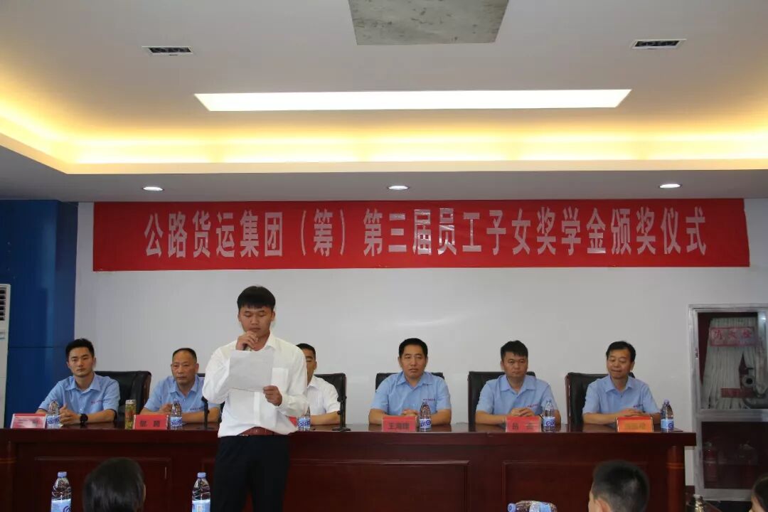 2019年8月27日上午,公路货运集团(筹)第三届员工子女奖学金颁奖仪式在方正公司四楼大会议室举行。集团公司董事长丁力、集团公司副总经理丁科、方正公司、万捷公司总经理王海建、公路公司总经理吕杰、科瑞公司总经理郁腾、九帝狼公司总经理虞国樑出席,并在主席台就座。集团下属各公司中层管理人员、2019年员工子女奖学金获得者及家长共计80余人参加。