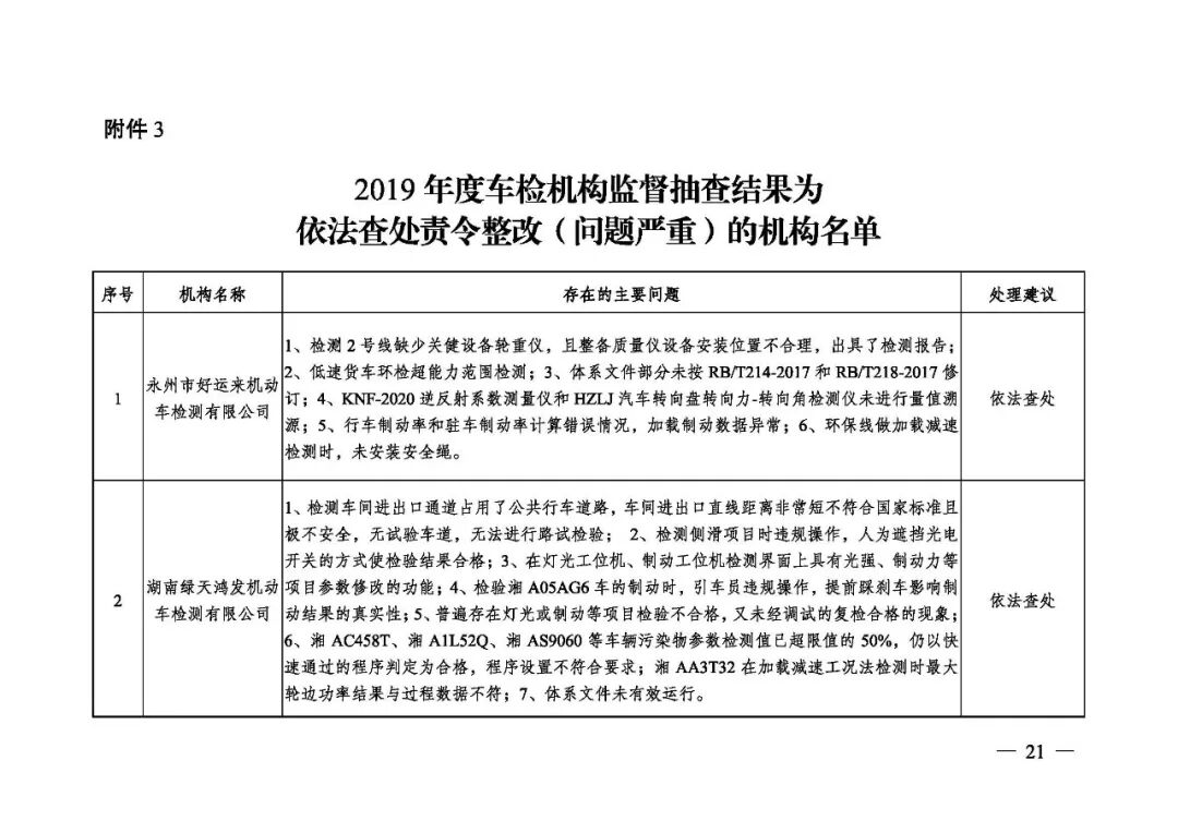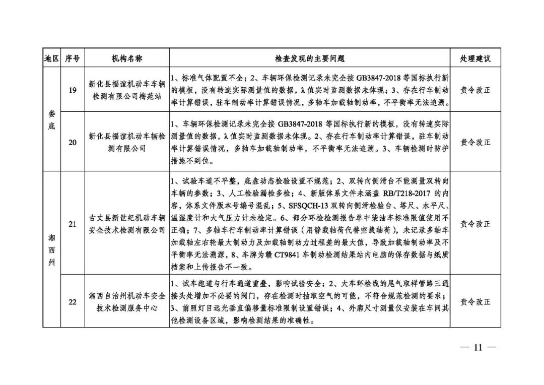 据了解,此次监督抽查对66家机动车检验机构、26家生态环境监测机构进行了检查,发现各类问题200余个。在66家机动车检验机构中,37家机构被处 “责令改正”,17家机构 “依法查处,责令整改”,10家机构 “依法查处,责令整改(问题严重)”,2家机构依法注销资质;26家生态环境监测机构中,3家机构 “自行整改后通过”,18家机构被处“责令改正”,3家机构 “依法查处,责令整改”,2家机构依法注销资质。