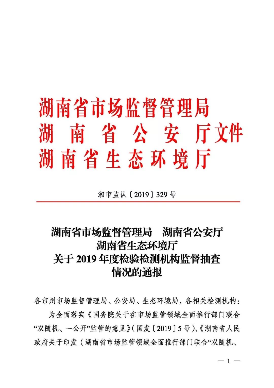 12月20日,湖南省市场监管局联合省公安厅、省生态环境厅专门发文,对2019年度检验检测机构监督检查情况进行了通报。