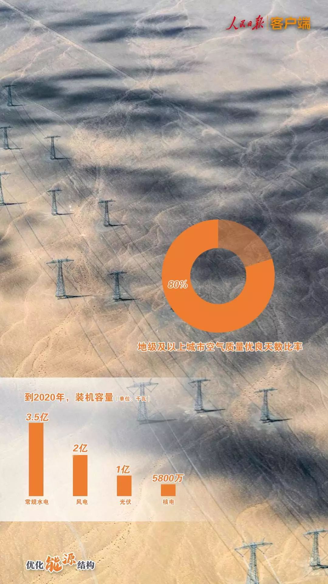 到2020年,常规水电装机容量力争达到3.5亿千瓦,核电总装机容量达到5800万千瓦,并网风电装机容量达到2亿千瓦,太阳能发电装机容量达到1亿千瓦。