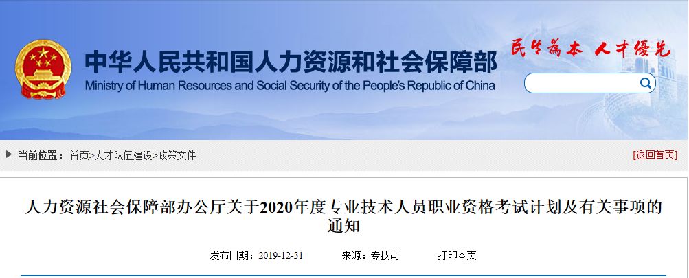 为进一步做好专业技术人员职业资格考试的规划与管理,便于广大专业技术人员参加职业资格考试,经商有关部门同意,现就2020年度专业技术人员职业资格考试计划及有关问题通知如下: