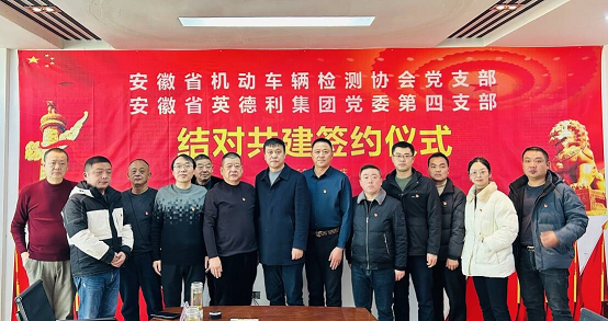 为进一步加强协会党组织建设,创新党建工作机制,促进资源共享、优势互补,1月9日上午,协会党支部与安徽英德利集团党委第四党支部结对共建签约仪式在安庆市宜车车辆检测有限公司举行。